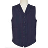 濃紺の生地にバーガンディーのドビーストライプ柄が施された、オリジナルのインディゴヘリンボン生地で製作。ナローな∨ゾーンとショールカラーが特徴的なワー…