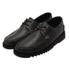 2つのレザーパーツを縫い合わせたモカシンタイプのつま先に、5つあるハトメの外羽根式、シューレース根元の四角いカンヌキ(スクエアステッチ)、ライニングのな…
